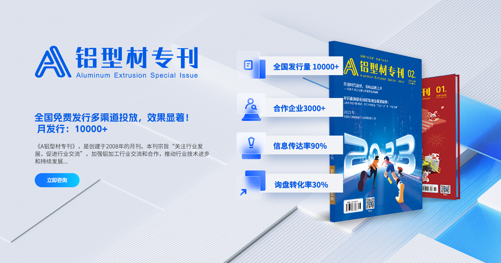鋁加網(www.albiz.cn)是聞名鋁加工行業的垂直門戶網站,云聚鋁業新生態,構建鋁業新場景,以albiz.cn 網站為核心,以移動云端、鋁加工微信、鋁加網視頻號、《鋁型材??泛汀朵X世界》雜志為載體,成為了鋁加工行業資訊和精準傳播的首選傳媒。鋁加網,采集和發布全行業信息資訊,提供線上展覽、在線直播、短視頻、品牌策劃、品牌運營、品牌傳播等全方位的專業服務。